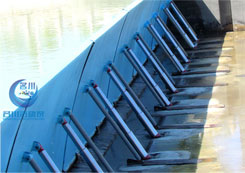 橡膠壩使用壽命短(橡膠壩采用的是再生橡膠原料,壩袋易老化,容易被上游漂浮物或尖銳物損壞,從而降低使用壽命);運(yùn)行管理難度大(洪水過后一旦壩面淤積較厚,要求人工清理,否則壩袋不能正常升起蓄水,增加了后期的人工費(fèi)用)。充水式橡膠壩冬季冰凍容易損壞壩袋,而充氣式橡膠壩不能調(diào)節(jié)壩高。